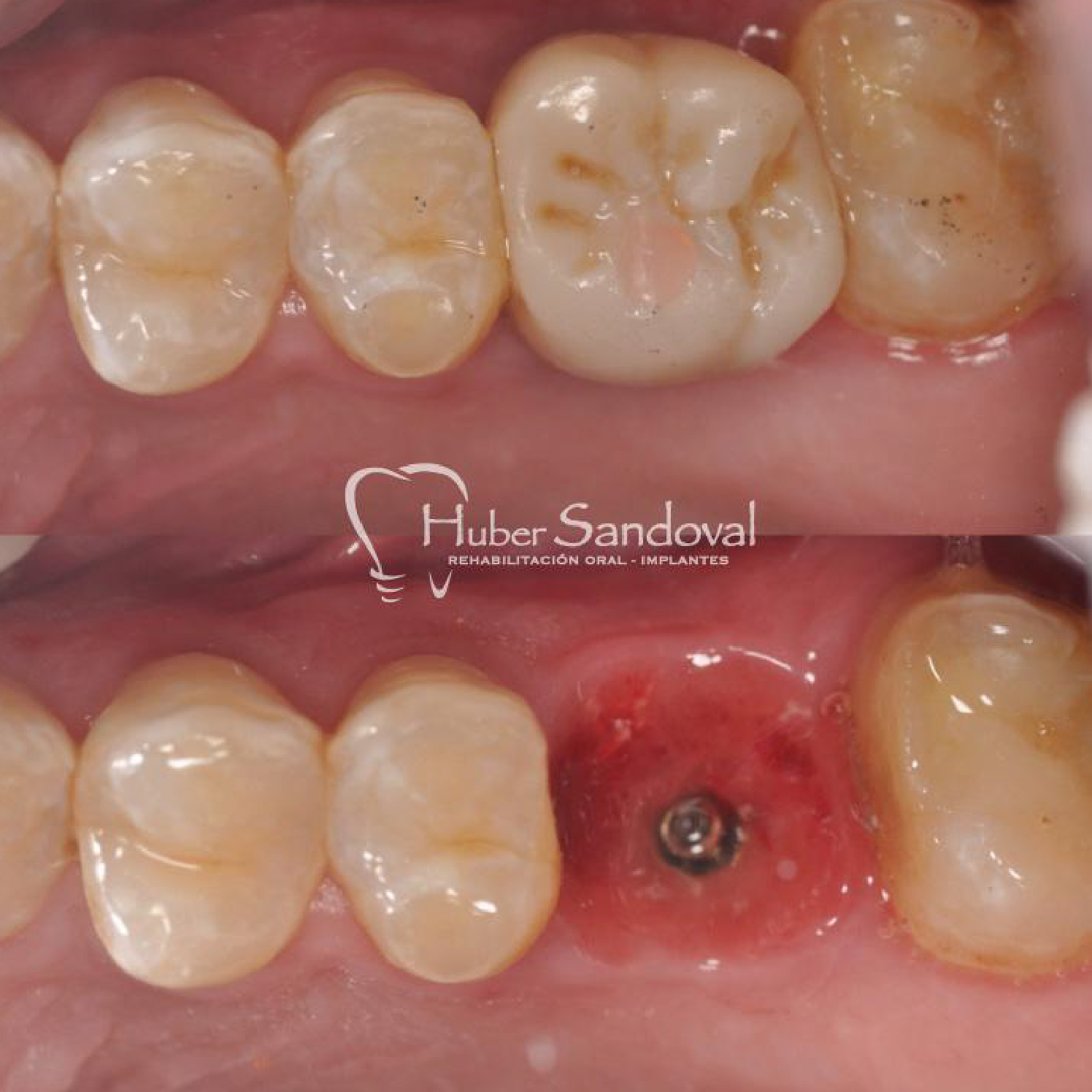 - Colocación del implante: cirugía ambulatoria para insertar el tornillo en el hueso.